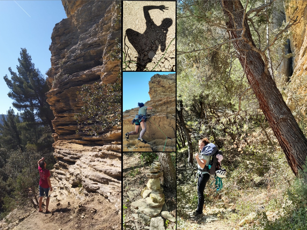 Avec Olivia on fait le 6b+ « Suivi de chantier », puis un autre 6b/b+ encore à l’ombre à droite, mais vers 14h30/15h, le soleil est déjà là, et il est temps de changer de secteur, direction le « Bord de route » pour une chasse aux oeufs pour Maé et Constance dans 2 petites voies du secteur, pendant que Nehamat et Flavien essaye la jolie « Intégrale de Peteway », en version longue pour Nehamat (7b+) et version courte pour Flavien (7b) .