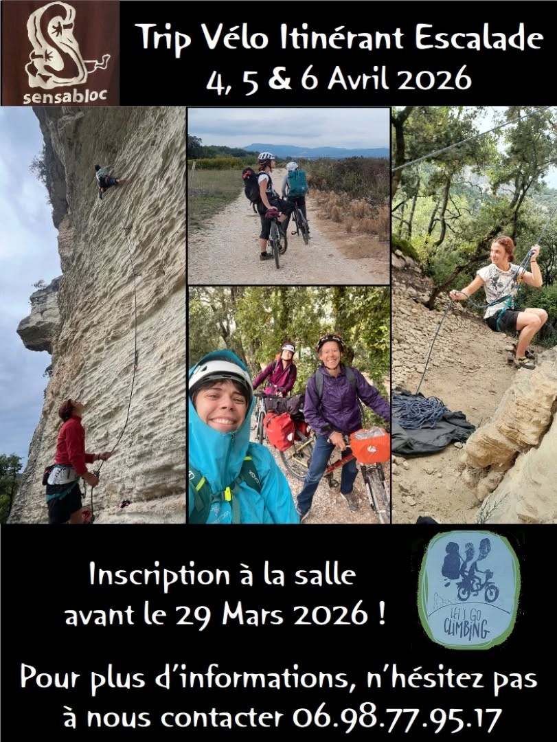 REGLEMENT : En espèce ou par chèque avant le 29 Mars 2026 (Chèque à l’ordre de Club Escalade Sensabloc)